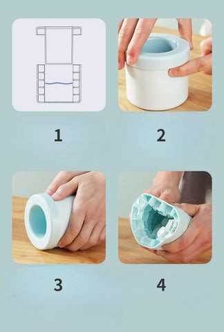 3 : Une fois la congélation terminée, placez le moule à température ambiante pendant quelques minutes, ou appuyez sur différentes positions du moule avec les deux mains pour détacher les glaçons, puis retirez le cylindre intérieur. Si vous ne voulez pas attendre et appuyer fort, vous pouvez verser une quantité appropriée d'eau chaude dans le cylindre intérieur pendant environ 10 secondes, puis vider l'eau chaude, puis retirer le cylindre intérieur.
