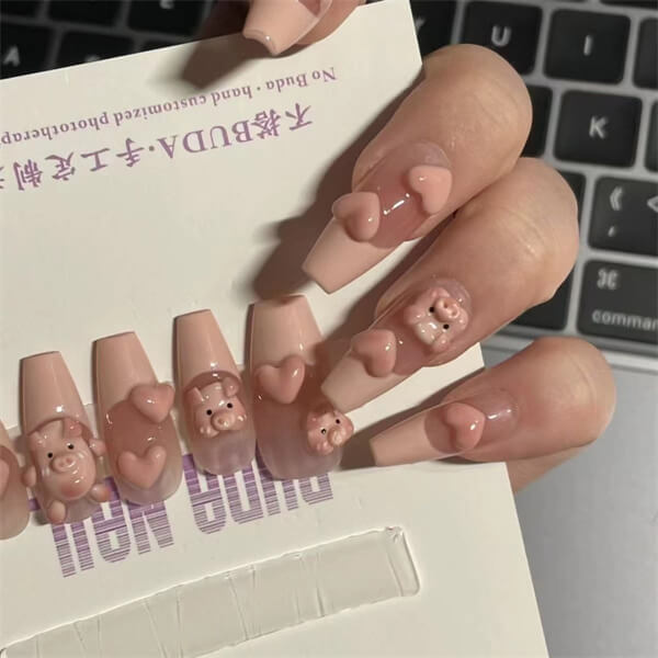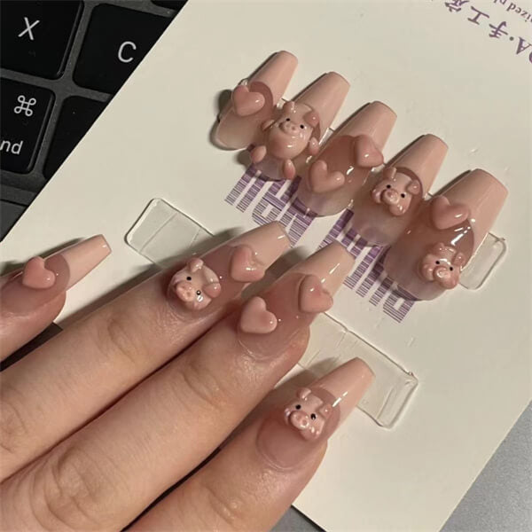 - Piggy Nail Charms: These miniature piggy charms come in a variety of colors and styles, allowing you to create unique and adorable nail designs.