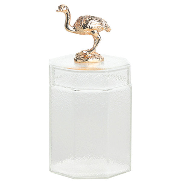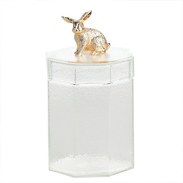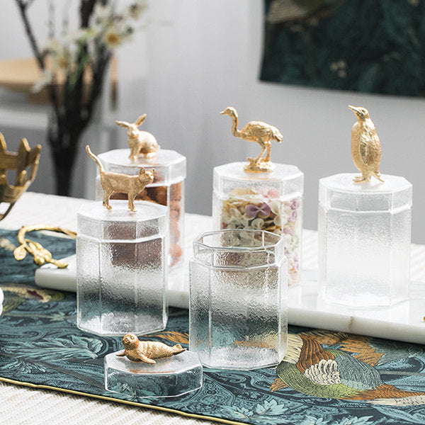 Great for interiors with a more modern aesthetic, these Animal Storage Containers feature textured glass with a gold animal on top, offering convenient ways to store your makeup, accessories, desktop essentials, and more!