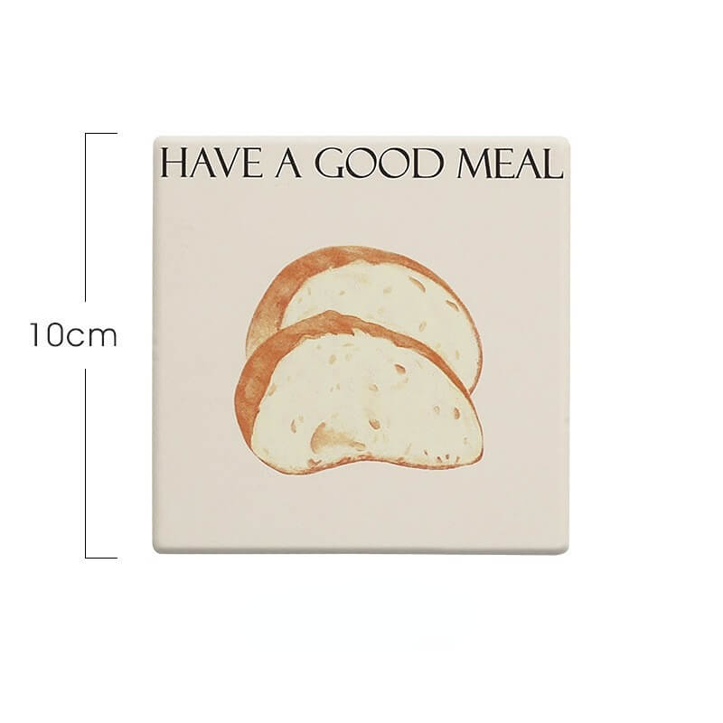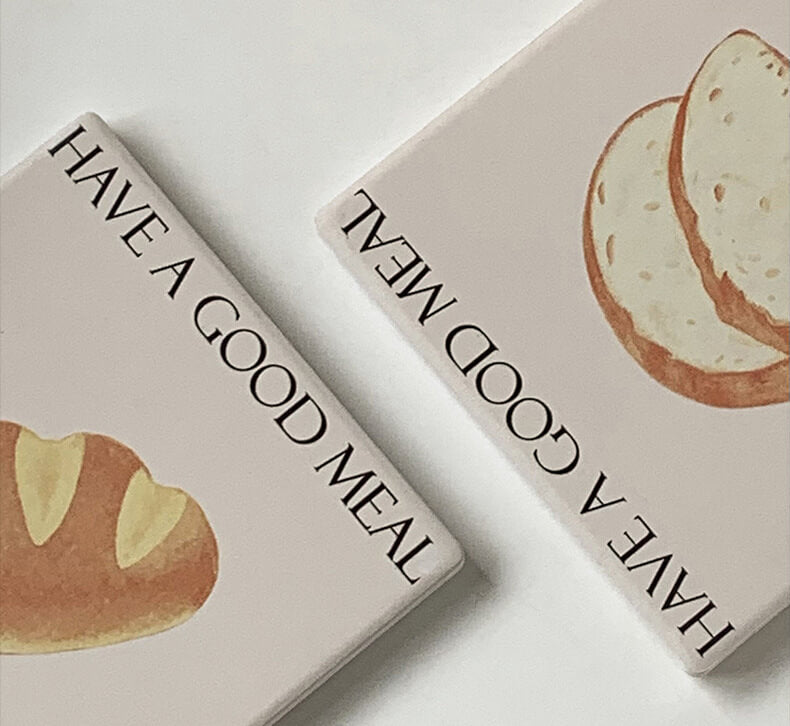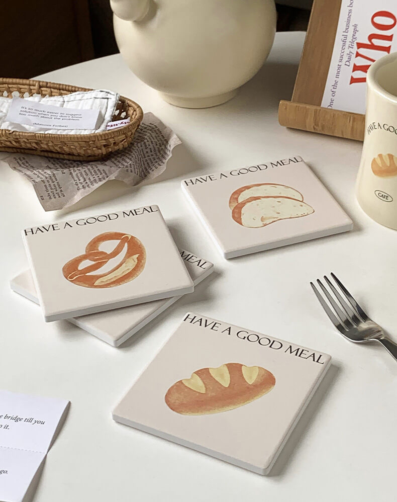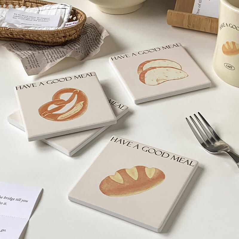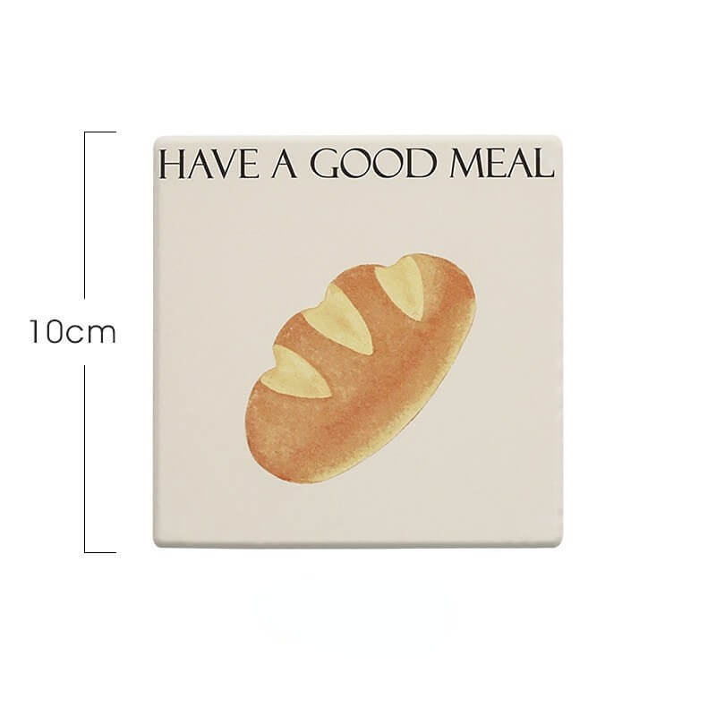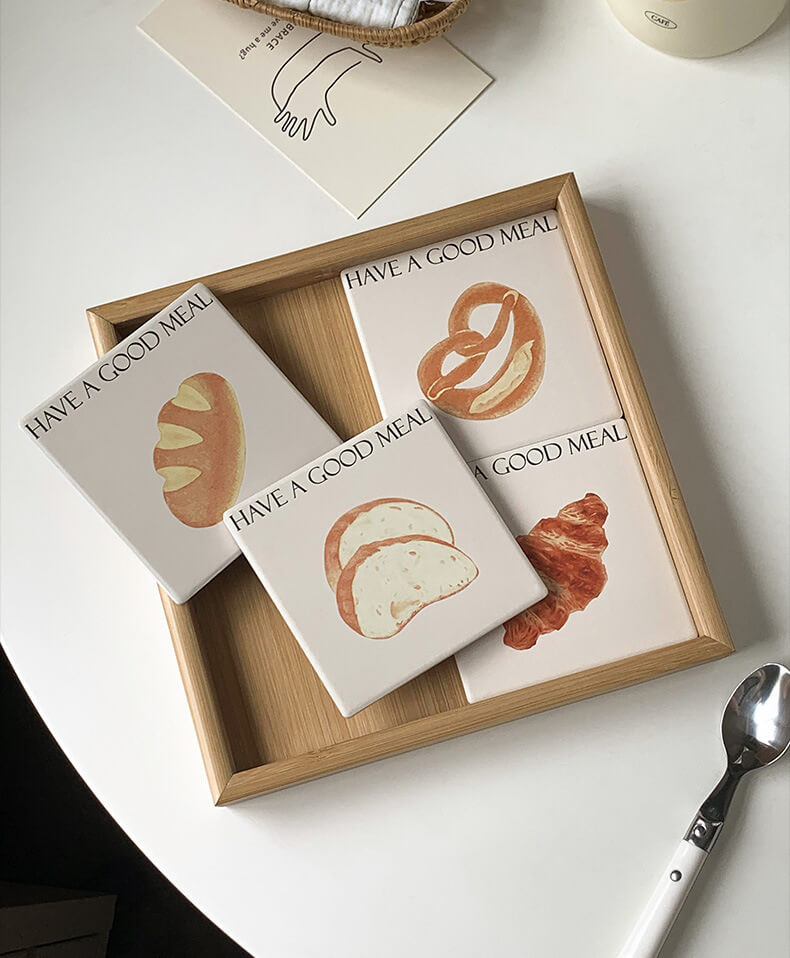 Product Description: This cute bread square coaster is made of reinforced ceramic material which has excellent heat insulation properties, and is anti-scratch, non-toxic, durable, and safe. It can be used as a coaster, pot holder, table mat, plate holder, and other kitchenware.