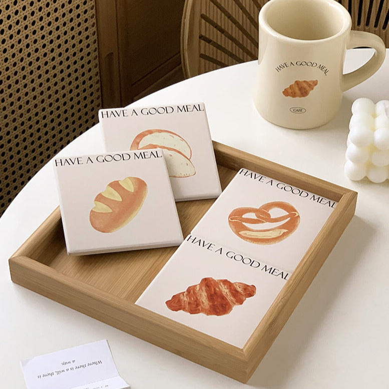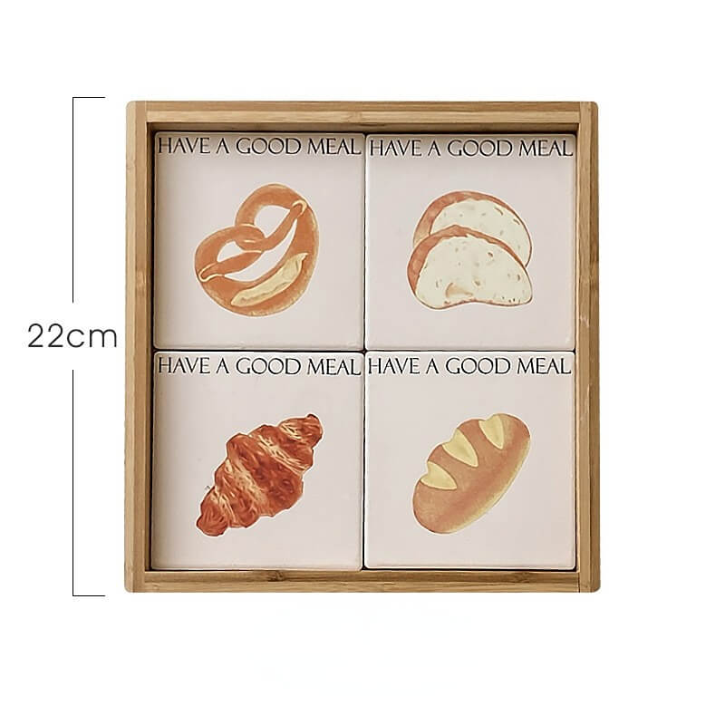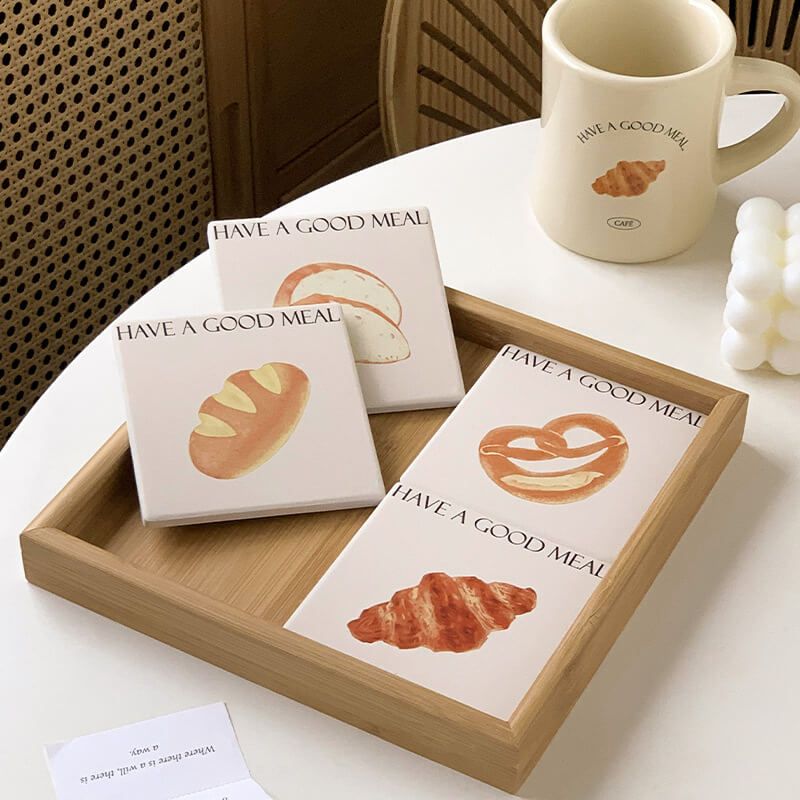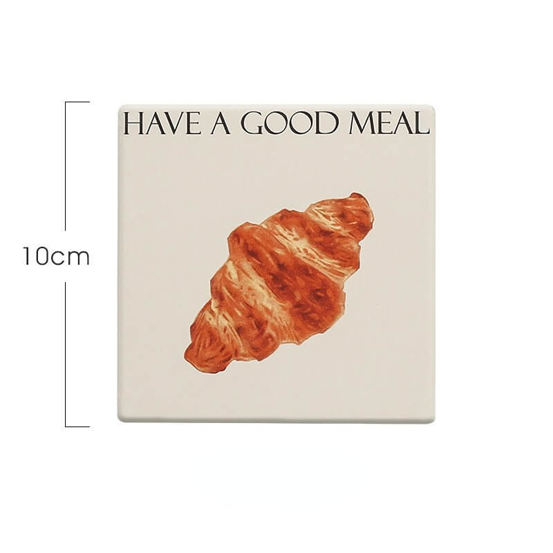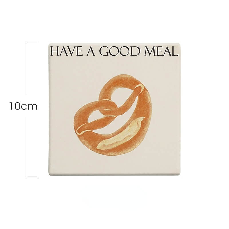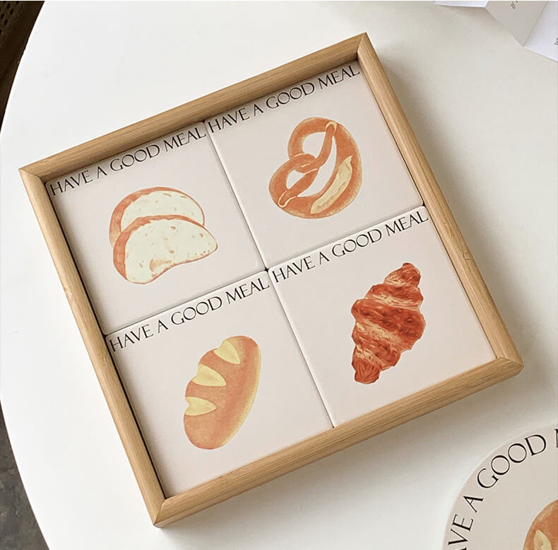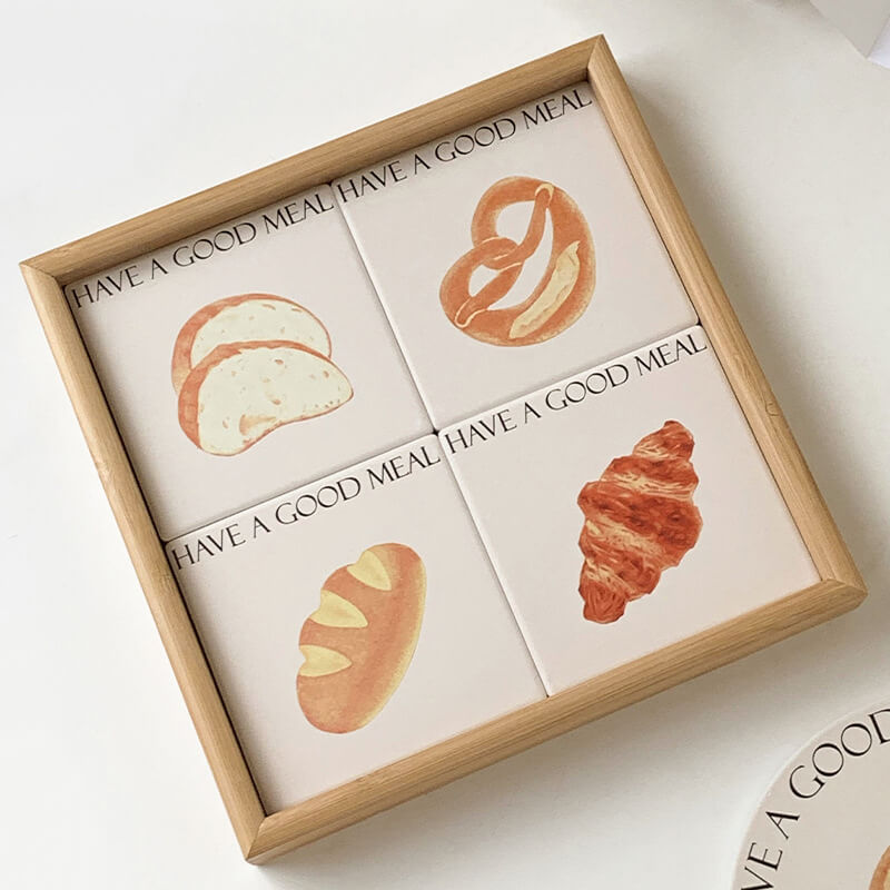 Product Description: This cute bread square coaster is made of reinforced ceramic material which has excellent heat insulation properties, and is anti-scratch, non-toxic, durable, and safe. It can be used as a coaster, pot holder, table mat, plate holder, and other kitchenware.