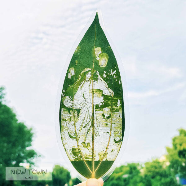Made with real leaves, delicate details have been carefully crafted onto each leaf to create this stunning artwork. We have upgraded the craftsmanship of this product by incorporating a plastic sealing process to protect the delicately crafted leaves, ensuring their longevity and durability. With real leaves and eco-friendly materials, this leaf art decoration is not only a visual delight but also a sustainable choice for art enthusiasts and fans of the 'Heaven Official's Blessing' comic world alike.
