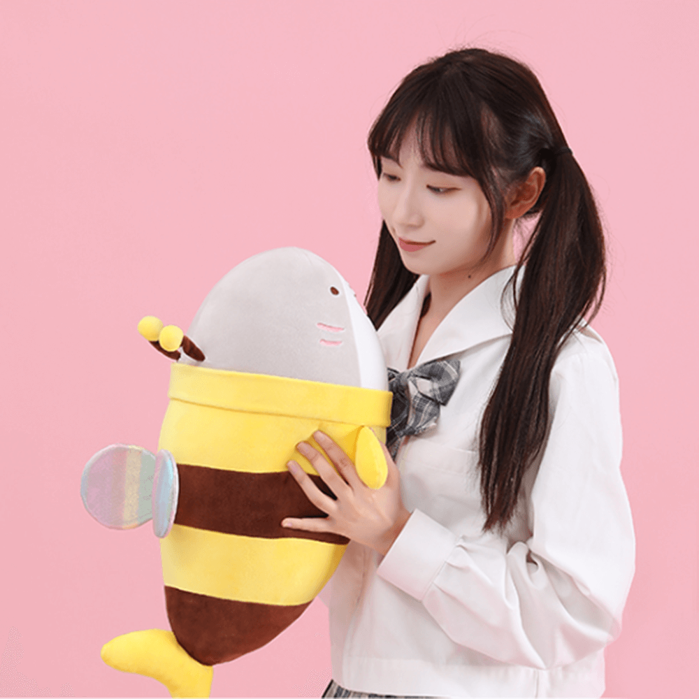 This adorable plush toy pillow is shaped like a strange shark bee fit sand sculpture, making it a unique and fun addition to any room. It comes in three sizes, small, medium, and large, so you can choose the perfect size for you or your child. The soft and cuddly material makes it perfect for snuggling up with while watching TV or reading a book.