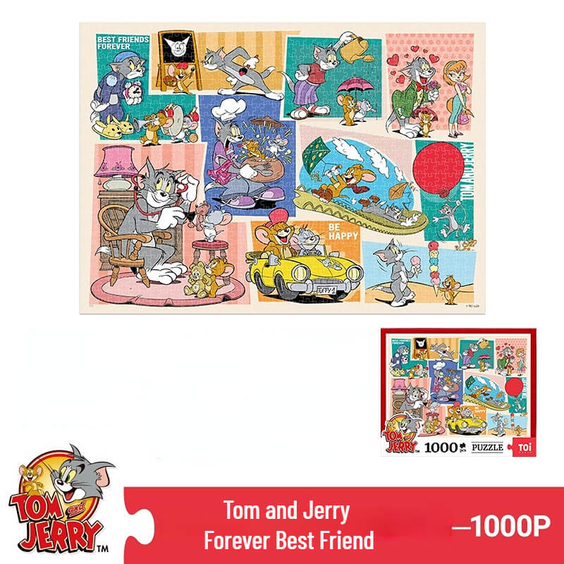 Product Description: This puzzle features the famous cartoon characters, Tom and Jerry. This puzzle is made of eco-friendly material.